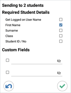 If specific Student details are required, select the relevant Students from the register list. Alternatively, to prompt all connected Students, leave the icons unselected.