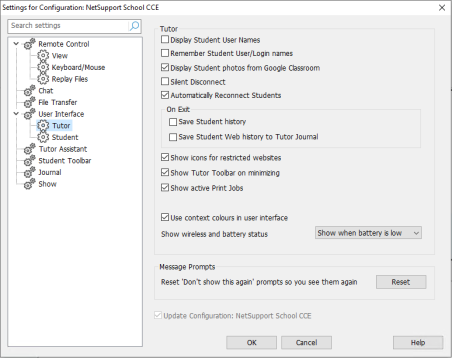 Click Options in the Tutor Console and select Settings from the drop-down menu.