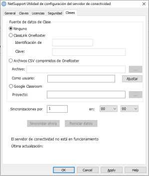 Herramienta de configuración del Servidor de conectividad de NetSupport - Ficha Clases