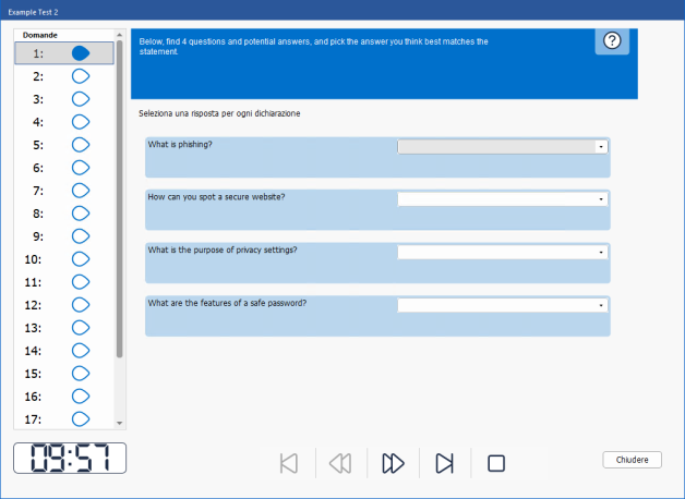 Usare i pulsanti situati in fondo alla finestra per spostarsi da una domanda all'altra e per terminare l'anteprima. Inoltre, è possibile fare clic sul numero della domanda, alla sinistra della finestra, per visualizzare ogni domanda individuale.