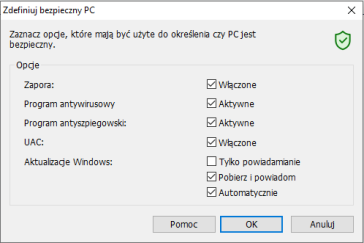 Zdefiniuj opcje, służące do określenia, czy komputer jest zaklasyfikowany jako bezpieczny.