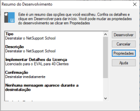 Clique em Propriedades para digitar os detalhes do desenvolvimento. O diálogo Desinstalar NetSupport School aparece.