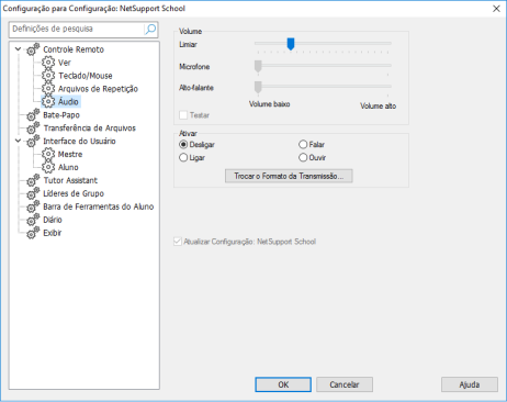 Definições para Configuração: Caixa de diálogo NetSupport School